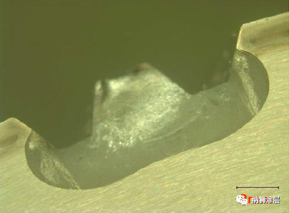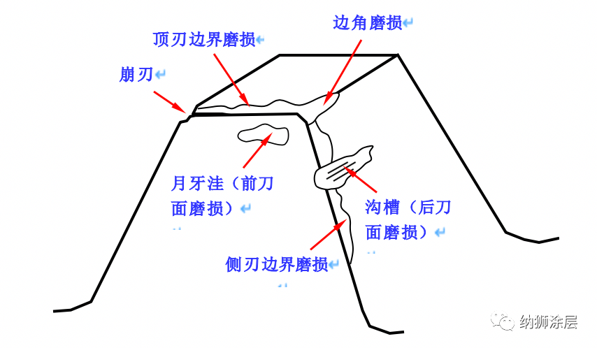 一种侧面磨损的方式是磨穿PVD涂层,基材也被磨掉。不同的应用容许有正常的磨损量。